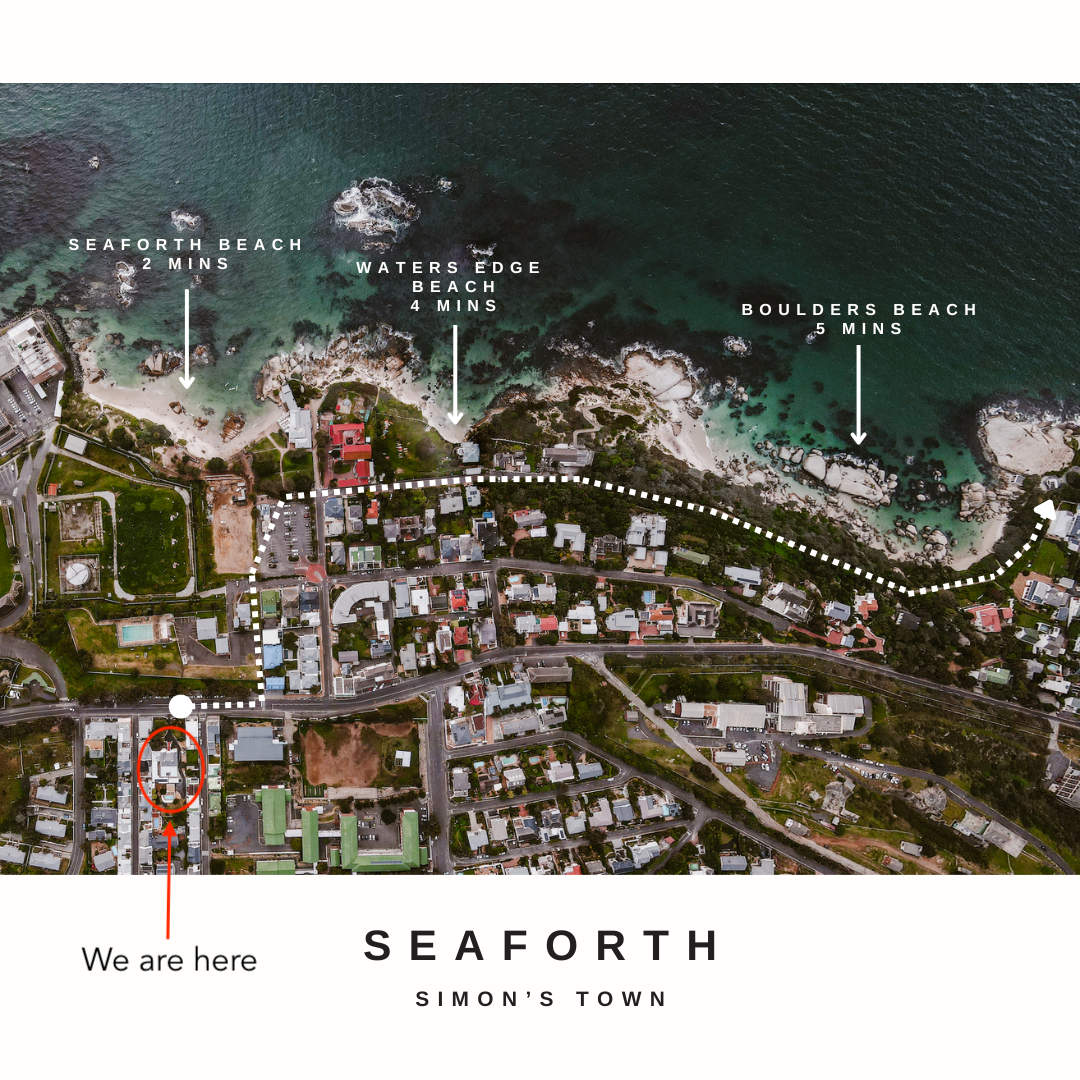 Situated 40km from the Cape Town City Centre, Bonne Esperance is located within the Seaforth area of Simon's Town. Simon's Town is a charming, naval village with many interesting historical buildings, museums, antique shops, quaint coffee houses and restaurants. It is surrounded by mountains and sea, ready for you to explore. Some of Cape Town's best attractions are close by such as Boulder's beach (600m or a 5 minute walk) and Cape Point (a 15 minute drive).